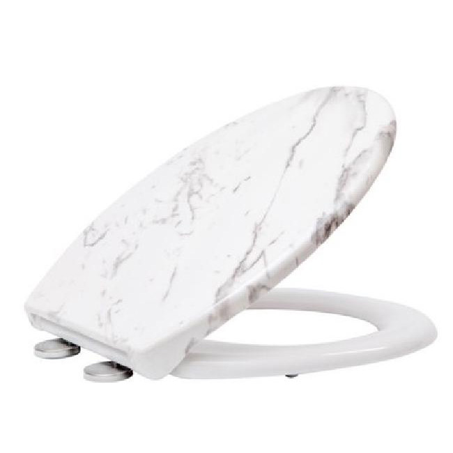 Kursi toilet bermotif marmer adalah pilihan praktis dan bergaya untuk kamar mandi mana pun, menawarkan kehalusan dan keanggunan namun tetap mudah dirawat dan dibersihkan.